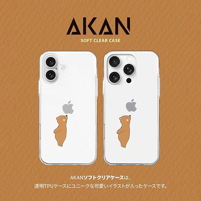 AKAN iPhone 16 Pro ケース ソフトクリアケース [ 透明 密着痕防止 TPU 変色しにくいUVプリント 防塵 ワイヤレス充電 ] かわいい 人気 キャラクター アップル アイフォンケース AK27036i16PR リンゴの香りを堪能 ベア 【国内正規品】 | LIS MART