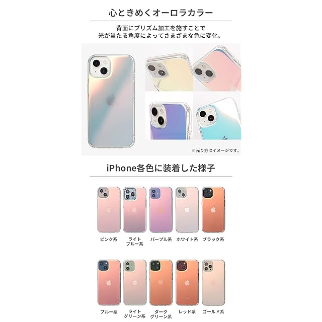 HIGHER iPhone 15/14/13 ケース ハイブリッドケース 耐衝撃 (オーロラ)【スマホケース アイフォン15 iphone14 iphone13 カバー 耐衝撃 透明 クリアケース】 | LIS MART