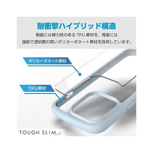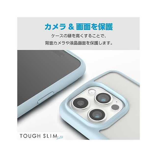 商品名:エレコム iPhone15 Pro ケース TOUGH SLIM LITE 耐衝撃 衝撃吸収 薄型 軽量 ストラップシート付き ストラップホール付き [全周配置のエアークッションが衝撃を吸収] ブルー PM-A23CTSLFCBU