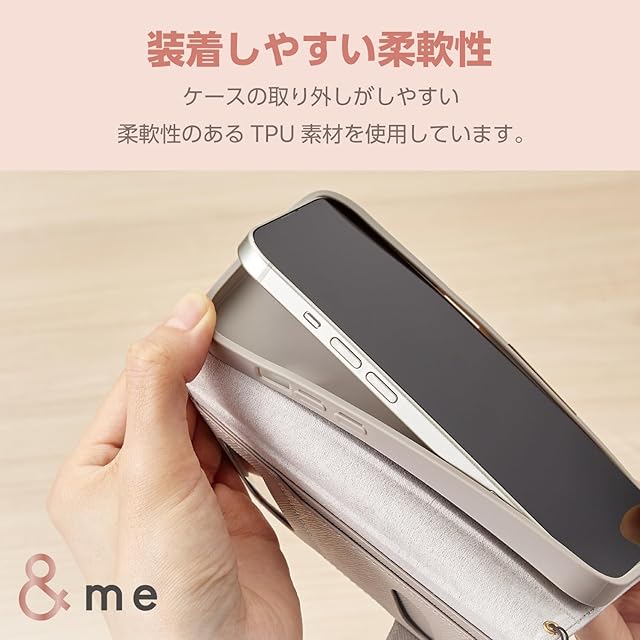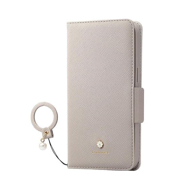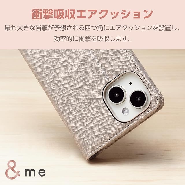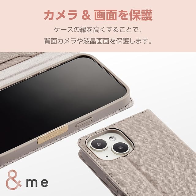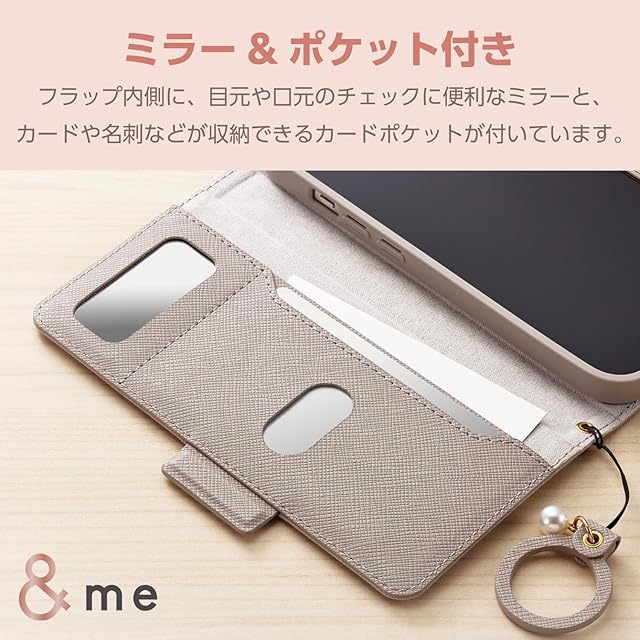 商品名:エレコム iPhone15 ケース &me 手帳型 コンパクトミラー付き フィンガーストラップ付き カードポケット×2 グレージュ PM-A23APLFJM2GB