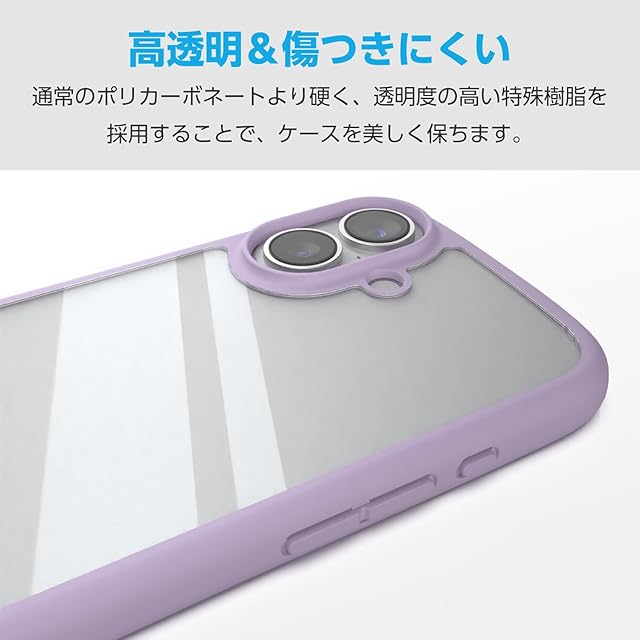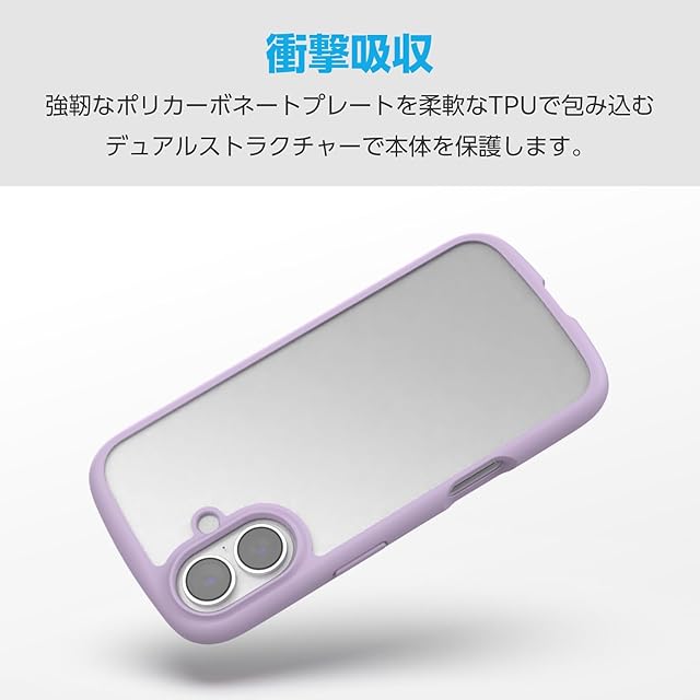商品名:エレコム iPhone 16e ケース 背面クリア 透明 耐衝撃 衝撃吸収 軽量 薄型 ワイヤレス充電対応 MagSafe メタルリング シール付 ストラップホール/ショルダーストラップシート付 ラベンダー PM-A25STSLFCPU