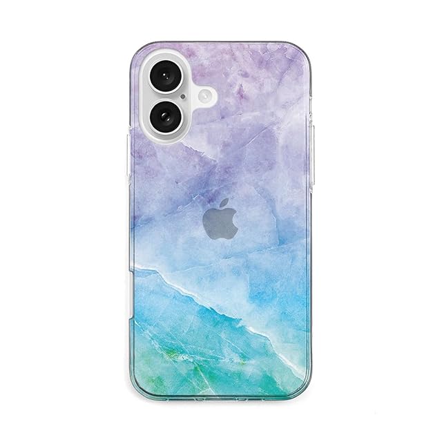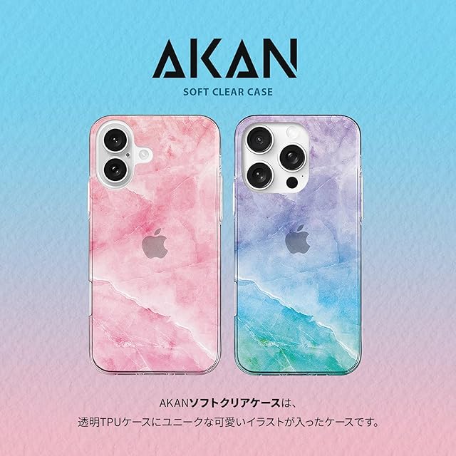 AKAN iPhone 16 ケース ソフトクリアケース [ 透明 密着痕防止 TPU 変色しにくいUVプリント 防塵 ワイヤレス充電 ] かわいい 人気 キャラクター アップル アイフォンケース AK27033i16 マーベラスマーブル ブルー 【国内正規品】 | LIS MART