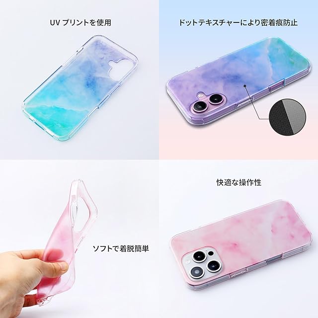 商品名:AKAN iPhone 16 ケース ソフトクリアケース [ 透明 密着痕防止 TPU 変色しにくいUVプリント 防塵 ワイヤレス充電 ] かわいい 人気 キャラクター アップル アイフォンケース AK27033i16 マーベラスマーブル ブルー 【国内正規品】