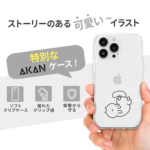 商品名:AKAN iPhone 16 Pro ケース ソフトクリアケース [ 透明 密着痕防止 TPU 変色しにくいUVプリント 防塵 ワイヤレス充電 ] かわいい 人気 キャラクター アップル アイフォンケース AK27020i16PR 猫ちゃんはリラックス中 【国内正規品】