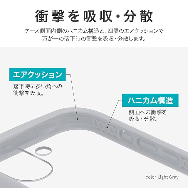 【耐衝撃】 衝撃を吸収・分散するハニカム構造のTPUと、硬く高透明なポリカーボネートのハイブリッドケース