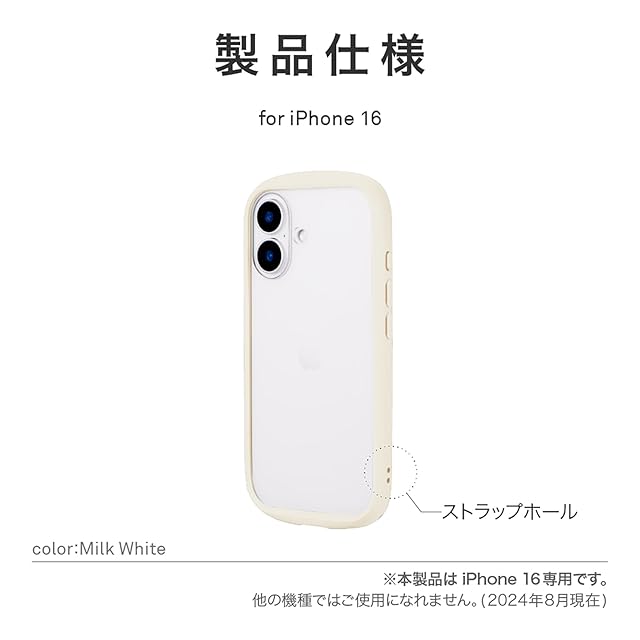 商品名:LEPLUS ルプラス iPhone 16 耐衝撃ハイブリッドケース 「Cleary」 ミルクホワイト LN-IM24PLCWH