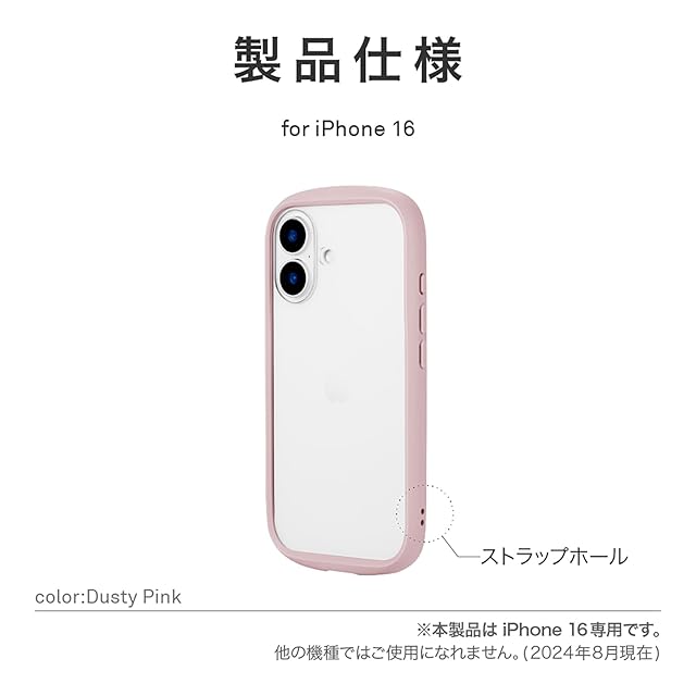 商品名:LEPLUS ルプラス iPhone 16 耐衝撃ハイブリッドケース 「Cleary」 ダスティピンク LN-IM24PLCPK