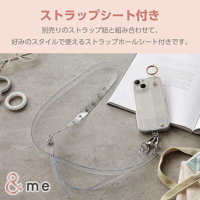 商品名:エレコム iPhone15 ケース &me バンド付き ベルト付き ホワイトバンド ストラップホルダー付属 ストラップホール付き クリア×クリアバンド PM-A23AHVHBCR