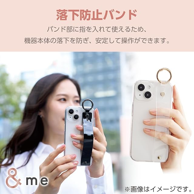 エレコム iPhone15 ケース &me バンド付き ベルト付き ホワイトバンド ストラップホルダー付属 ストラップホール付き クリア×クリアバンド PM-A23AHVHBCR | LIS MART