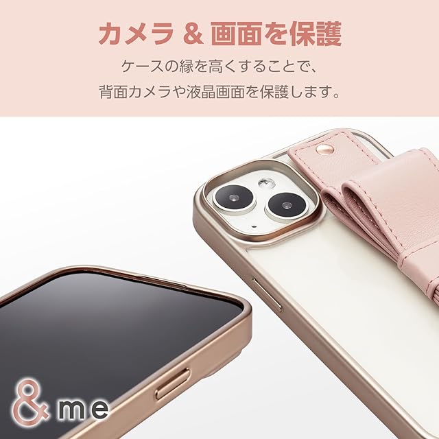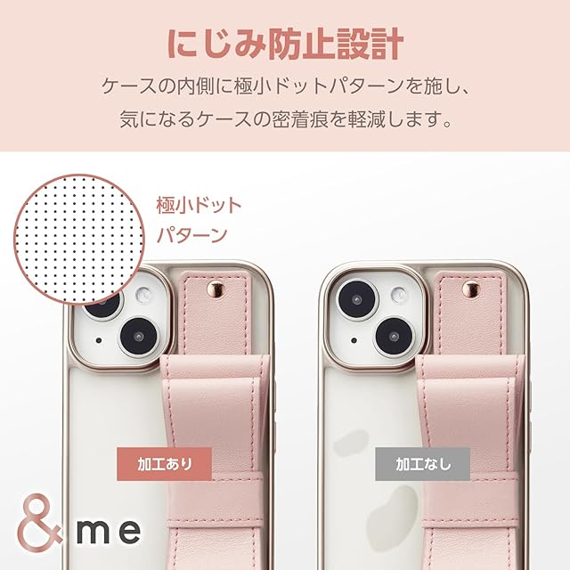 商品名:エレコム iPhone15 ケース &me バンド付き ベルト付き リボン ストラップホルダー付属 ストラップホール付き クリア×リボンバンド PM-A23AHVHB02