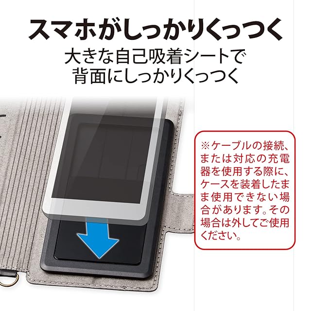 スマートフォンがピタッとくっつく自己吸着シートを採用し、機種を選ばず使用できます。