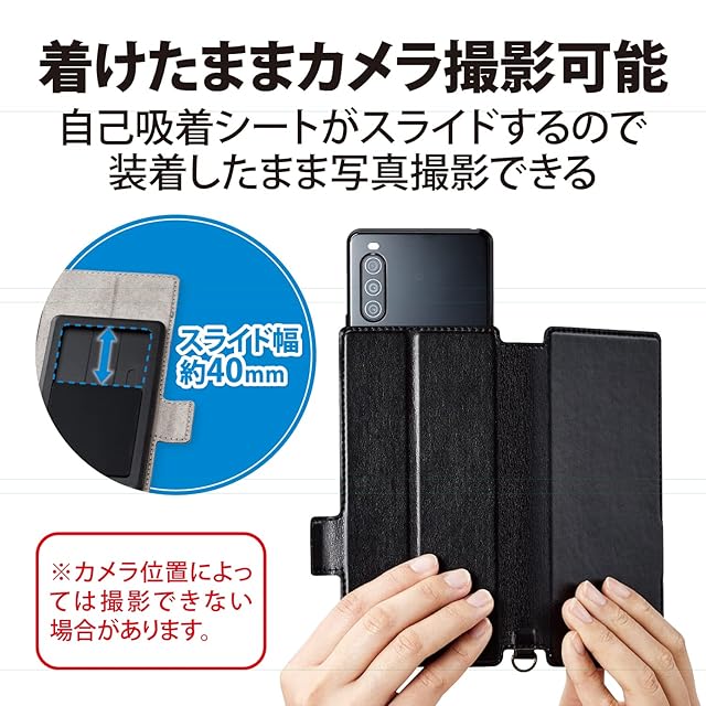 自己吸着シートが上下にスライドできるのでカバーを装着したまま写真撮影が可能です。