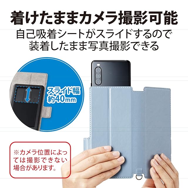 自己吸着シートが上下にスライドできるのでカバーを装着したまま写真撮影が可能です。