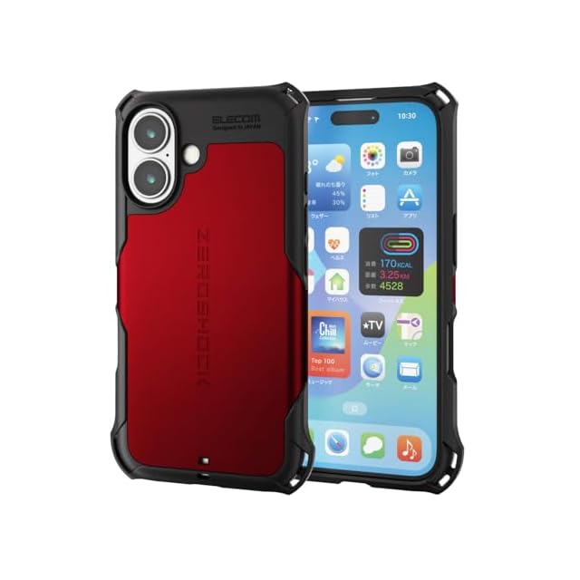 商品名:エレコム iPhone 16 ケース 耐衝撃 衝撃吸収 ZEROSHOCK [フィルム付き] ハニカム構造 4つ角ダンパー ストラップホール付き ワイヤレス充電対応 レッド PM-A24AZERORD