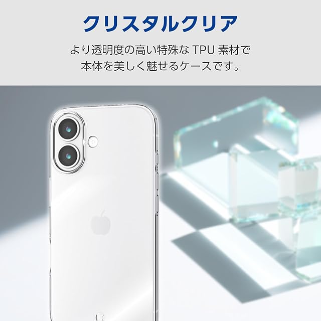 エレコム iPhone 17 ケース カバー クリスタルクリア 透明 耐衝撃 衝撃吸収 ソフト TPU 薄型 1.0mm マイクロドット加工 メタルステッカー付属 カメラレンズ保護設計 クリア PM-A25AUCT3CR | LIS MART