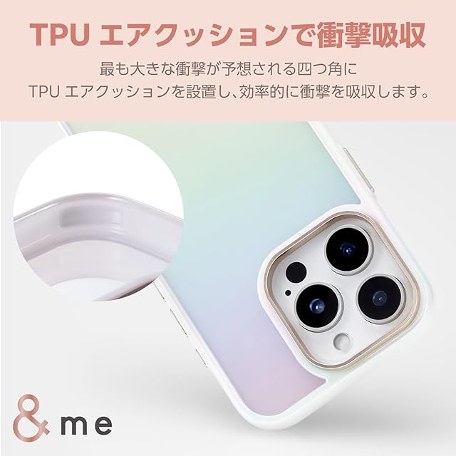 オーロラのような輝きが美しい、ポリカーボネートとTPU(熱可塑性ポリウレタン)の2素材を組み合わせた、&meシリーズのハイブリッドケースです。