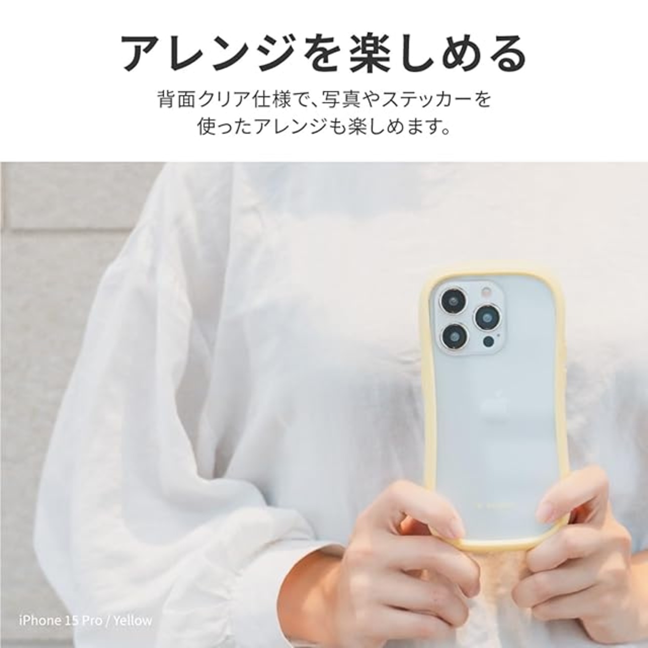 ストラップホール搭載(側面)/写真やステッカーを使ったアレンジも楽しめる背面クリア仕様
