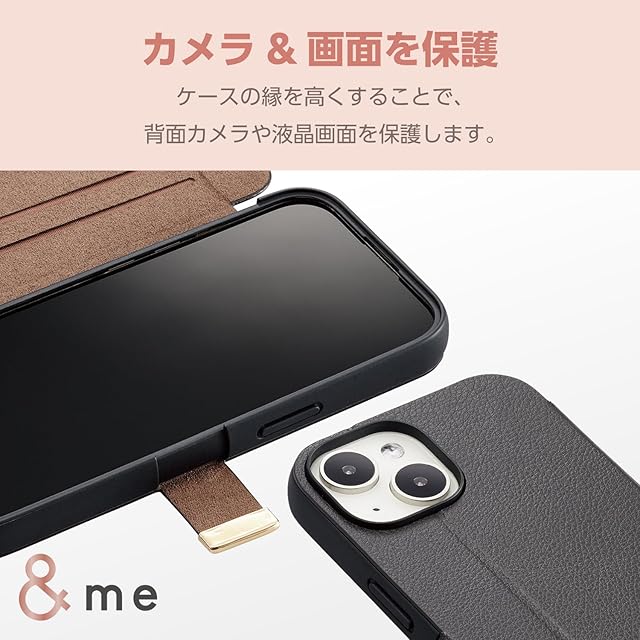 商品名:エレコム iPhone15 ケース &me 手帳型 レザー 革 マグネット開閉 カードポケット×2 チャコールブラック PM-A23APLFYJ3BK