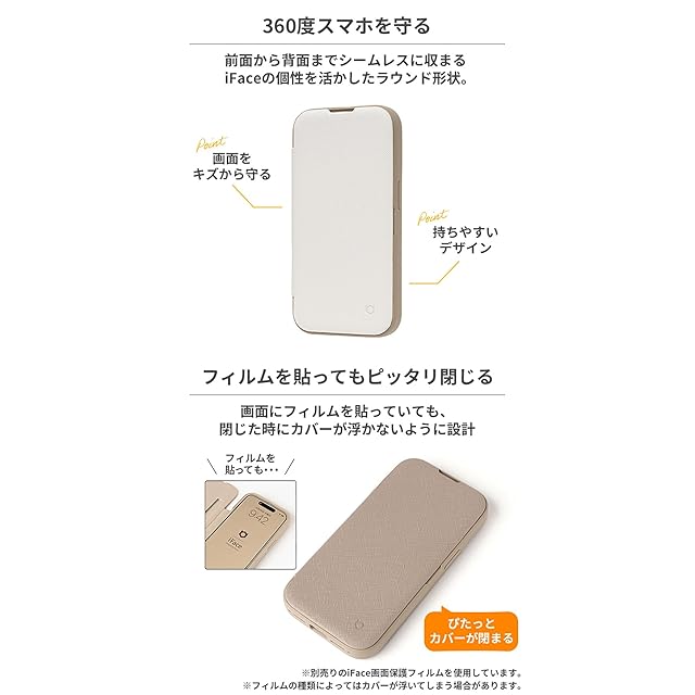iFaceの手帳型ケース「Cardina(カルディナ)」がリニューアルして登場!<br><br>人気のCardina手帳型ケースが進化を遂げて帰ってきました。<br>アップデートした2ndモデルは、シンプルなデザインと機能性の良さを両立。<br>360度あなたのスマホをしっかり守ります。<br><br>・安心のiFace手帳型でフルカバー<br>・カード収納ポケット付きで便利(カードは1枚まで収納可)<br>・前面から背面までシームレスに収まるラウンド形状<br>・角度調整可能なスタンド機能付き<br>・iFaceのスマホアクセサリー(フィルム、カメラレンズ、ストラップ)との併用も可能<br>・前面カバー・背面カバーを開ければMagSafe充電可能※<br><br>※カバーを閉じたままのワイヤレス充電は不可<br><br><br>●複数の機種に装着可能な兼用ケースは、ご使用の機種によっては一部のボタンやカメラ周りの隙間などが均等でなく片寄ることがあります。<br>●本製品ご使用における人体・スマートフォン本体を含む持ち物・データなどの損傷、損失、紛失に対し、弊社は一切の責任を負いかねます。<br>●スマートフォン本体やケースに発熱などの異常がある場合は本製品を外してください。<br>●画面保護フィルムの形状により本製品と併用できない場合があります。<br>●背面カメラでの撮影時に写り込みが起こる場合があります。<br>●本製品内蔵のマグネットにより、スマートフォンのコンパスアプリやカメラ動作等に影響する場合があります。<br>●本製品はマグネットを使用しております。カードポケットへの磁気カード(クレジットカード等)の収納は避けてください。<br>読み取りができなくなるおそれがあります。<br>●電子マネーアプリにカード情報が登録された状態では、本製品カードポケットに入れたICカード(Suica等)は読み込みができない場合があります。<br>その場合は、電子マネーアプリのカード登録を削除してご利用ください。<br>●本製品はカバーを閉じたままでのワイヤレス充電には対応しておりません。<br>●ご使用の機種、充電器や環境によってワイヤレス充電がご利用いただけない場合があります。<br>●本製品は傷や軽度の衝撃から保護するケースです。落下などの大きな衝撃から機器を守るものではありません。<br>●ご利用状況・環境、溶剤の使用などにより変色や変質が起きることがあります。<br>●本製品装着やOSアップデートにより、スマートフォンの一部機能が使えなくなる可能性があります。<br>●本製品およびパッケージは改良のため予告なく仕様を変更する場合があります。<br>●記載されている製品名・会社名などは各社の商標または登録商標です。<br><br><br>商品仕様<br>15用:約縦15.4×横7.9×厚1.8cm、重量約104g<br>主素材:ポリカーボネート、ポリウレタン、TPU、マグネット<br>ストラップ装着:可<br>ワイヤレス充電:可<br>:有
