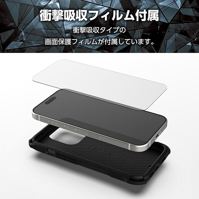 商品名:iPhone15 Pro ケース ハイブリッド 衝撃吸収 フィルム付 ブラック