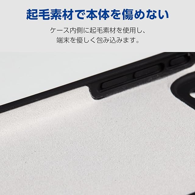 ケース内側には起毛素材を使用し、端末を優しく包み込みます。