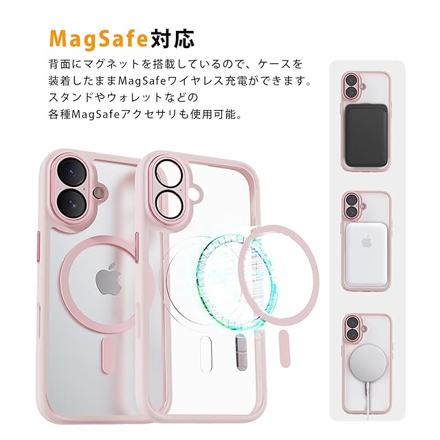 miak iPhone 16 plus ケース レンズガード 一体型 MagSafe対応 クリアケース [ カメラレンズ保護 アルミ合金カメラフレーム・ボタン 衝撃吸収 エアークッション 耐衝撃 防塵 背面ポリカーボネート TPUベゼル ] アイフォン 保護カバー MA27197i16PL ピンク 【国内正規品】 | LIS MART