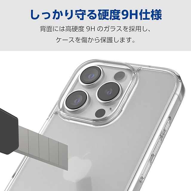 エレコム iPhone 16 Pro ケース クリア 強化ガラス背面 硬度9H ハイブリッド ストラップホール付き 4つ角エアークッション ワイヤレス充電対応 クリア PM-A24CHVCG1CR | LIS MART