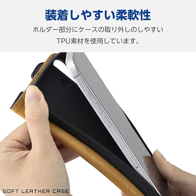 便利な機能を搭載した、革のようなやわらかな風合いのソフトレザーケース(手帳型)です。