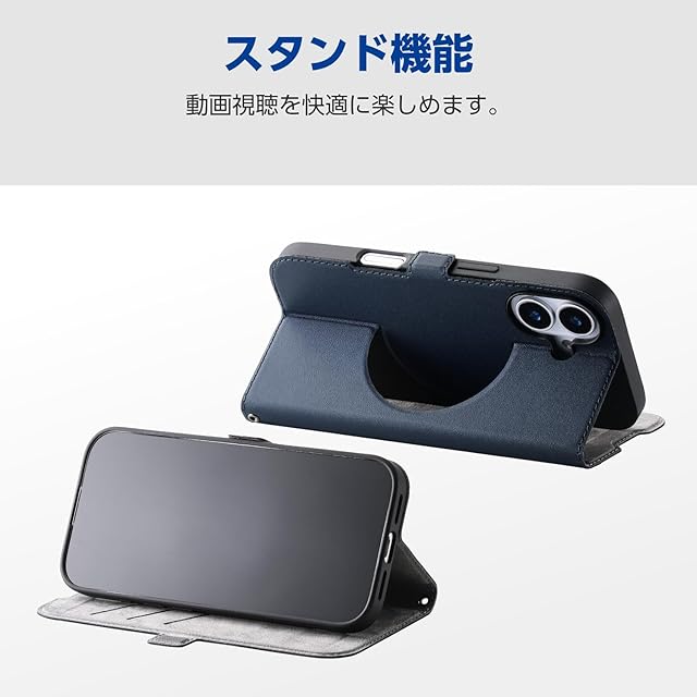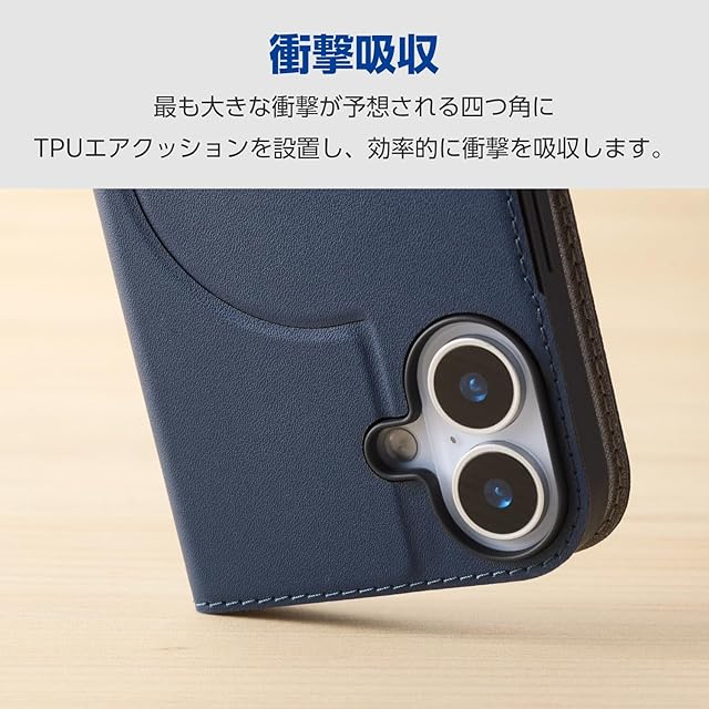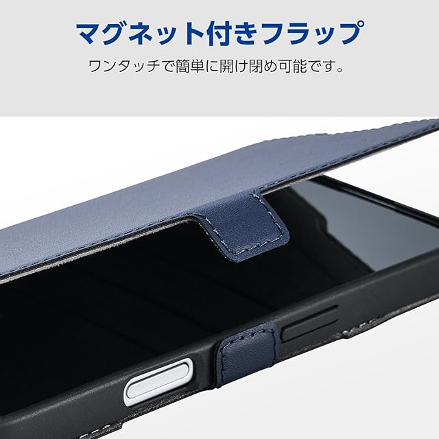 エレコム iPhone 17 ケース カバー 手帳型 薄型 軽量 ソフトレザー TPU 磁石付 マグネット MAGKEEP カードポケット スタンド機能 4つ角エアークッション ワイヤレス充電対応 ネイビー PM-A25APLFMGNV | LIS MART