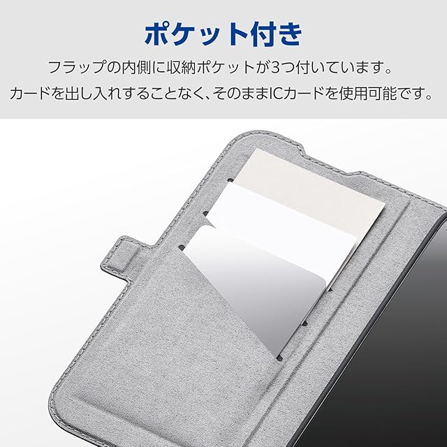 不使用時に画面部分をカバーする、横開きタイプのフラップが付いています。