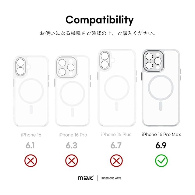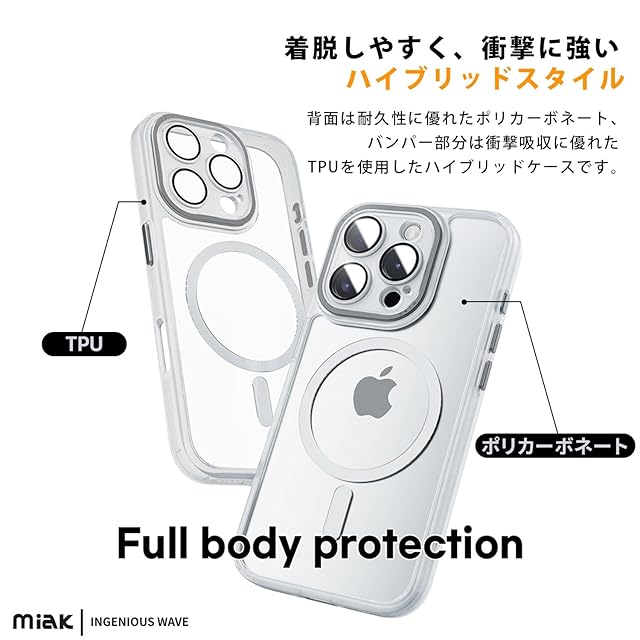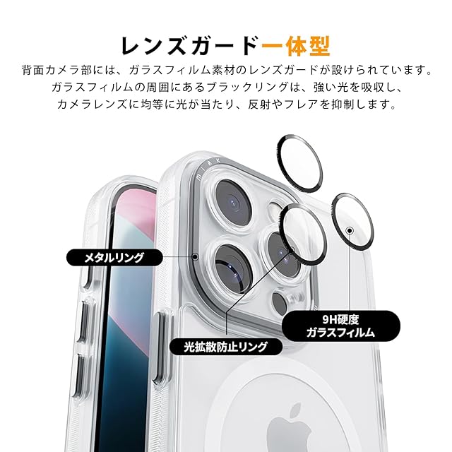 商品名:miak iPhone 16 pro Max ケース レンズガード 一体型 MagSafe対応 クリアケース [ カメラレンズ保護 アルミ合金カメラフレーム・ボタン 衝撃吸収 エアークッション 耐衝撃 防塵 背面ポリカーボネート TPUベゼル ] アイフォン 保護カバー MA27203i16PM スモーキークリア 【国内正規品】