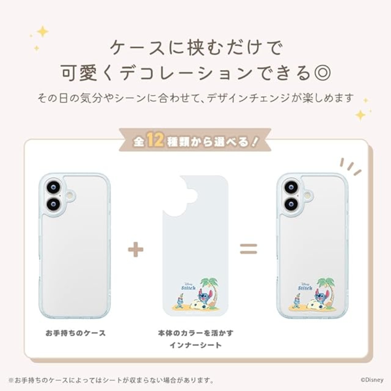 背面が透明のケースに挟んでアレンジが楽しめるディズニーキャラクターデザインのiPhon17 クリアケース用 着せ替えシート