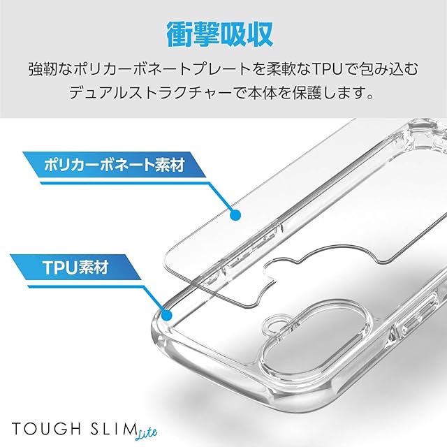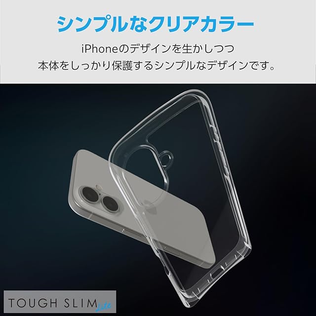 商品名:エレコム iPhone 16 ケース クリア 耐衝撃 衝撃吸収 ハイブリッド 薄型 軽量 ストラップホール付き ワイヤレス充電対応 全周エアークッション TOUGH SLIM LITE クリア PM-A24ATSLASHCR