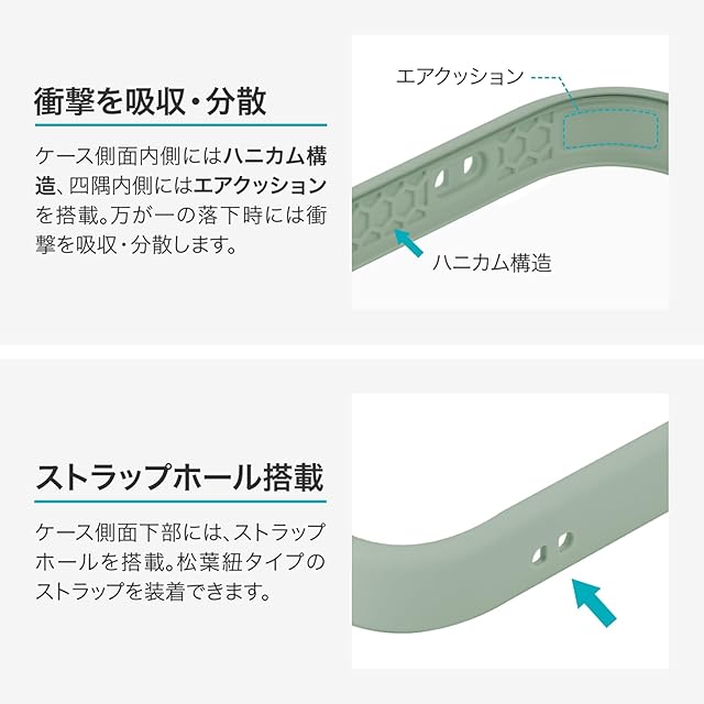 【耐衝撃】 衝撃を吸収するTPUと、硬く高透明なポリカーボネートのハイブリッドケース