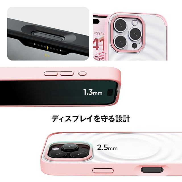 ポリカーボネート背面とTPUベゼルのハイブリッド素材で、高耐久、着脱もスムーズ。