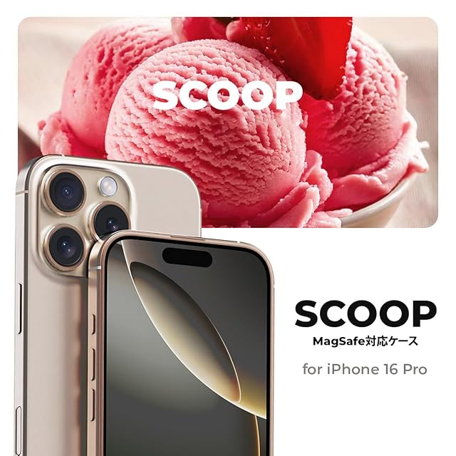 miak iPhone 16 Pro 用 SCOOP MagSafe対応ケース [ アイスクリームモチーフの立体デザイン メタルカメラフレーム レンズ保護 背面ポリカーボネート TPU 衝撃吸収 ハイブリッド構造 防塵設計 ストラップホール付き ] ストロベリー MA27609i16PR【国内正規品】 | LIS MART