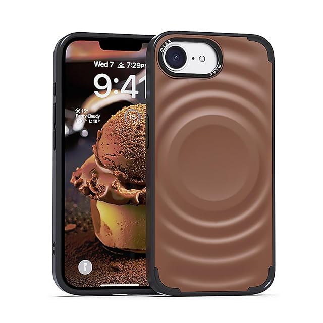 商品名:miak iPhone 16e 用 SCOOP MagSafe対応ケース [ アイスクリームモチーフの立体デザイン メタルカメラフレーム レンズ保護 背面ポリカーボネート TPU 衝撃吸収 ハイブリッド構造 防塵設計 ストラップホール付き ] モカムース MA27631i16E【国内正規品】