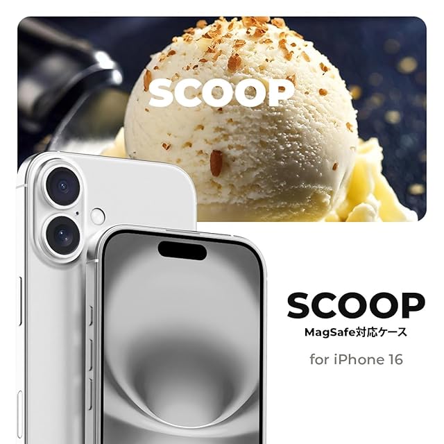 商品名:miak iPhone 16 用 SCOOP MagSafe対応ケース [ アイスクリームモチーフの立体デザイン メタルカメラフレーム レンズ保護 背面ポリカーボネート TPU 衝撃吸収 ハイブリッド構造 防塵設計 ストラップホール付き ] ソルテッドバニラ MA27620i16【国内正規品】