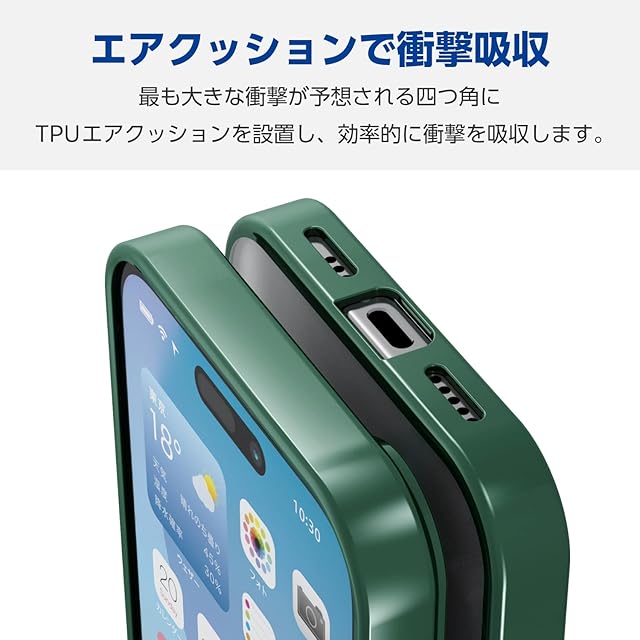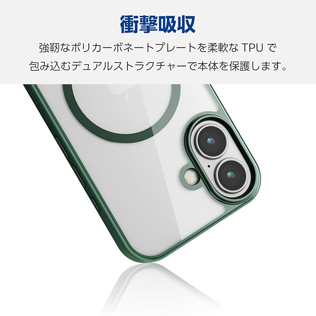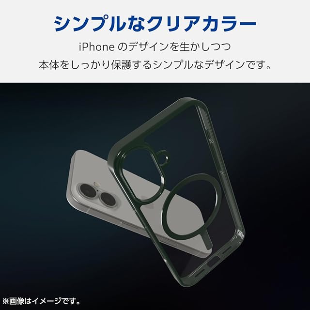 商品名:エレコム iPhone 16 ケース クリア マグネット MAGKEEP ハイブリッド フレーム付き ワイヤレス充電対応 4つ角エアークッション ディープグリーン PM-A24AMAG03GN