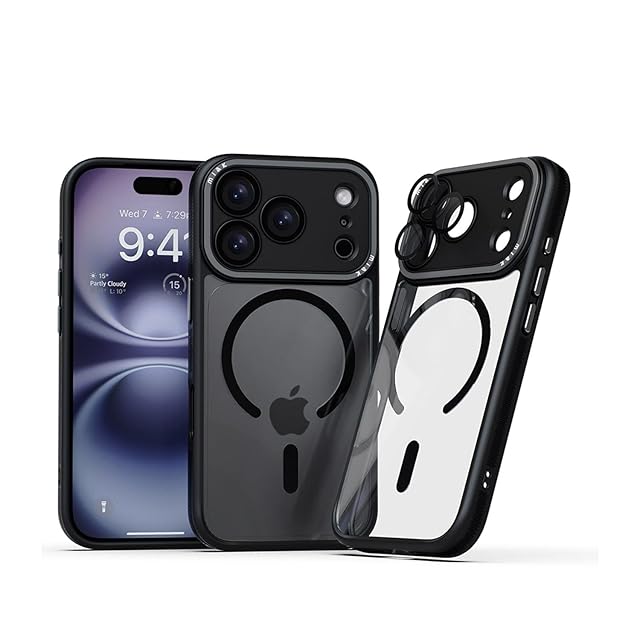 商品名:miak iPhone 17 Pro 用 レンズガード 一体型 クリアケース MagSafe対応 [ カメラレンズ保護 アルミ合金カメラフレーム 衝撃吸収 エアークッション 耐衝撃 防塵 背面ポリカーボネート TPU ] ブラック MA28080i17PR 【国内正規品】