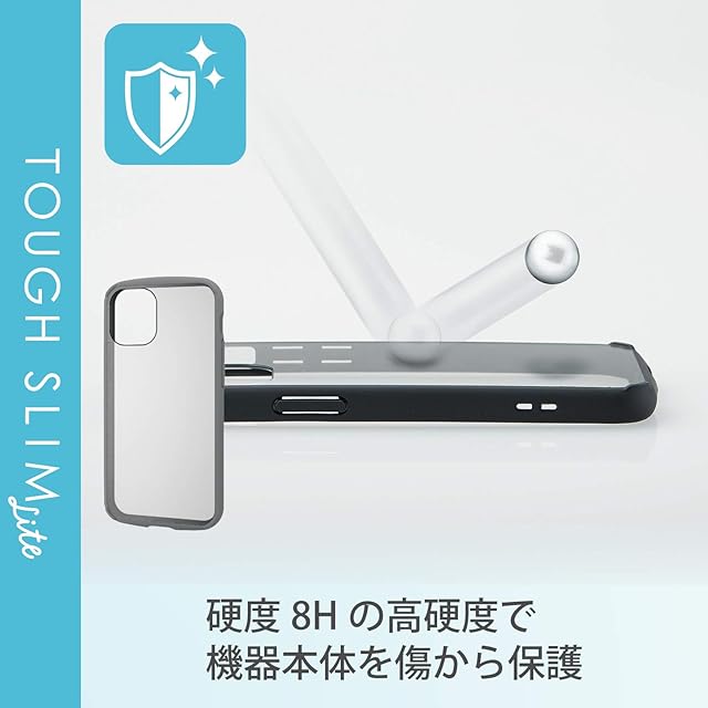 全周に配置した独自設計のエアクッションが衝撃を吸収し、背面には高硬度8Hの特殊樹脂を採用した、iPhone mini用TOUGH SLIM LITEケースです。