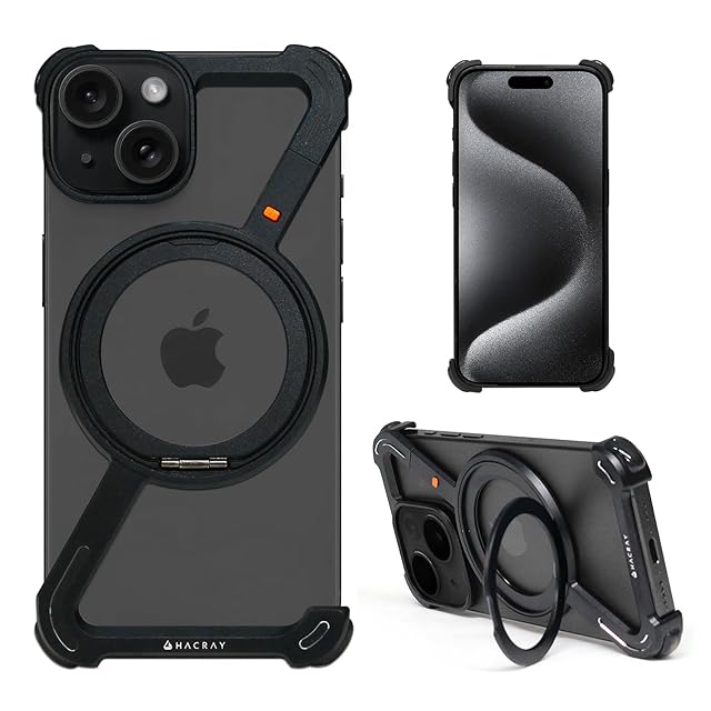 Hacray iPhone14 用 バンパーケース 360°回転 Magsafeリングスタンド [ アルミニウム素材 衝撃防止 高耐久性 MagSafe対応 落下防止 スマホグリップ ] HR26878i14 ブラック【国内正規品】 | LIS MART
