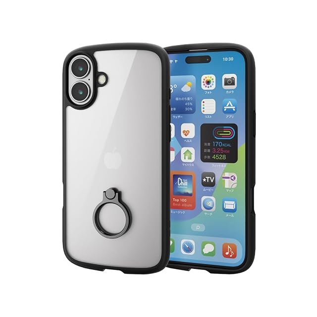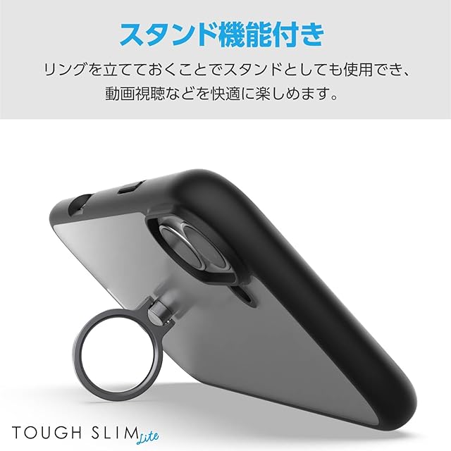 エレコム iPhone 16 Plus ケース クリア 耐衝撃 衝撃吸収 リング付き ハイブリッド 薄型 軽量 ストラップホール付き 全周エアークッション ストラップホルダーシート付 TOUGH SLIM LITE ブラック PM-A24BTSLFCRBK | LIS MART