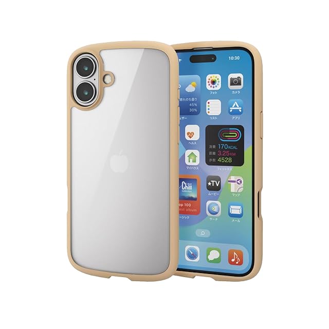 エレコム iPhone 16 Plus ケース クリア 耐衝撃 衝撃吸収 フレームカラー ハイブリッド 薄型 ワイヤレス充電 軽量 ストラップホール 全周エアークッション ストラップホルダーシート カフェオレ PM-A24BTSLFCBE | LIS MART