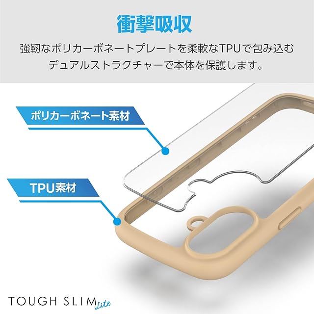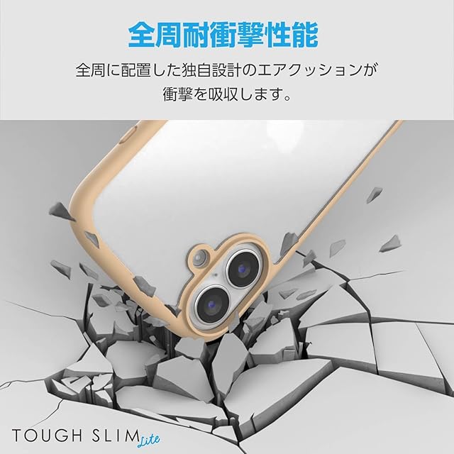 全周に配置した独自設計のエアークッションが衝撃を吸収し、背面には高硬度のポリカーボネートを採用した、TOUGH SLIM LITEケースです。