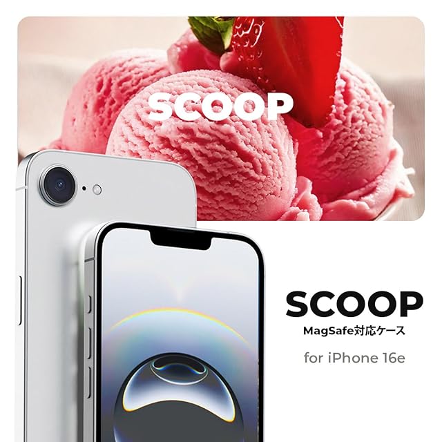 miak iPhone 16e 用 SCOOP MagSafe対応ケース [ アイスクリームモチーフの立体デザイン メタルカメラフレーム レンズ保護 背面ポリカーボネート TPU 衝撃吸収 ハイブリッド構造 防塵設計 ストラップホール付き ] ストロベリー MA27611i16E【国内正規品】 | LIS MART