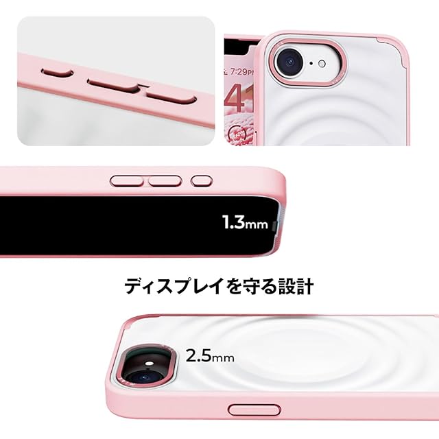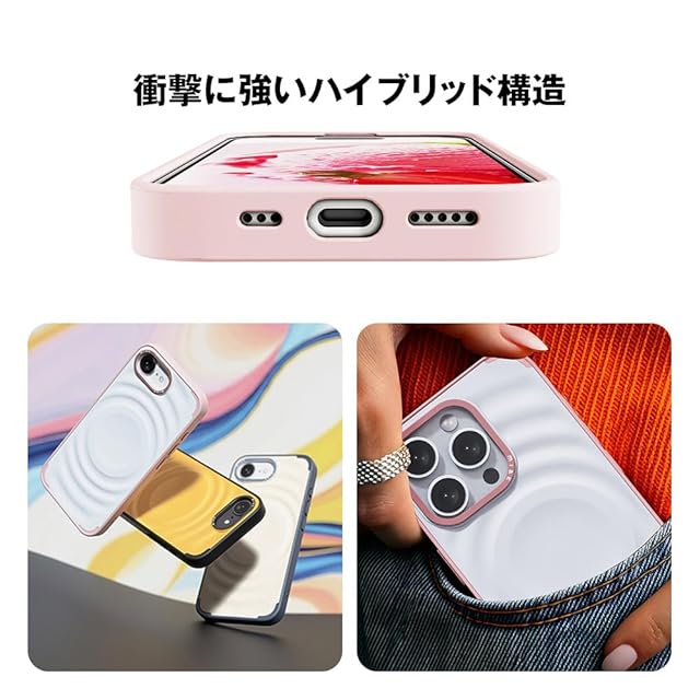 ポリカーボネート背面とTPUベゼルのハイブリッド素材で、高耐久、着脱もスムーズ。