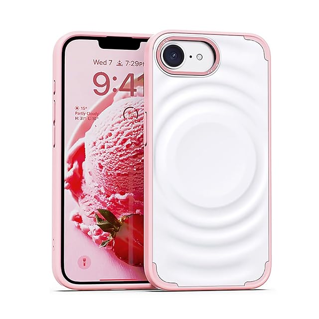 商品名:miak iPhone 16e 用 SCOOP MagSafe対応ケース [ アイスクリームモチーフの立体デザイン メタルカメラフレーム レンズ保護 背面ポリカーボネート TPU 衝撃吸収 ハイブリッド構造 防塵設計 ストラップホール付き ] ストロベリー MA27611i16E【国内正規品】