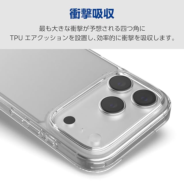 商品名:エレコム iPhone 17 Pro ケース カバー クリア 耐衝撃 衝撃吸収 ハイブリッド ポリカーボネート 指紋がつきにくい ストラップホール付き 4つ角エアークッション メタルステッカー付属 シルキークリア PM-A25CHVCKMCR