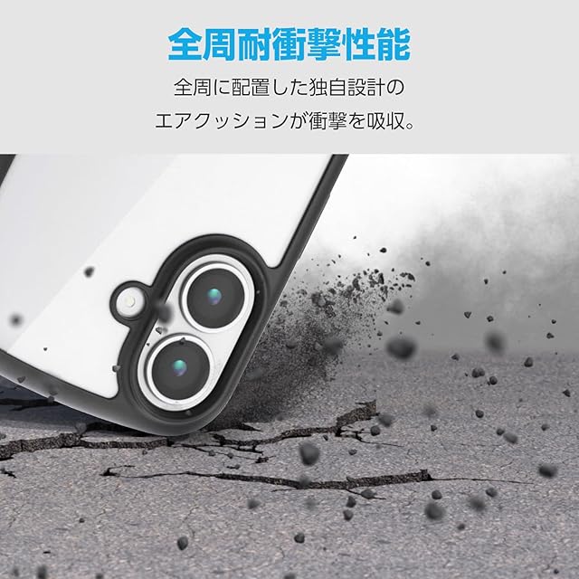 商品名:エレコム iPhone 17 ケース カバー クリア 耐衝撃 衝撃吸収 ハイブリッド 薄型 軽量 背面硬度9Hガラス仕様 ストラップホール付き 全周エアークッション ストラップホルダーシート付 ブラック PM-A25ATSLFCGBK